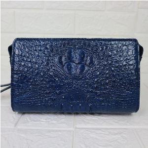 Ví Da Cá sấu Gập Dài - Đầu Gù - Màu Xanh - 17x10x2