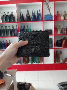 Ví Da Cá Sáu 2 Mặt - Vân Hông - Màu Đen